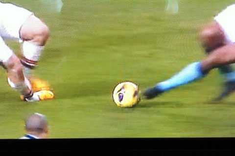 Nhưng sự thật lại không hoàn toàn như vậy. Pha quay chậm cho thấy, ngôi sao 26 tuổi không vào bóng thẳng bằng hai chân, mà anh chỉ vào bằng chân trái. Lý do khiến tuyển thủ người Anh bị lật nhào là vì trước đó, chân phải của cầu thủ này đã bị gập khiến anh mất đà. Kết hợp với cú cản phá quyết liệt của Kompany, Wilshere đã lựa chọn giải pháp an toàn là né đòn.