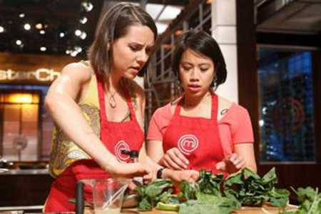 | Christine Hà (phải) và Becky Reams hợp tác một món ăn vòng 4 người của cuộc thi Vua đầu bếp |