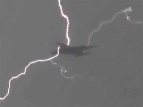 | Chiếc máy bay chở khách Airbus A380 bị sét đánh khi đang đến gần sân bay Heathrow, Anh năm ngoái nhưng không bị ảnh hưởng gì |