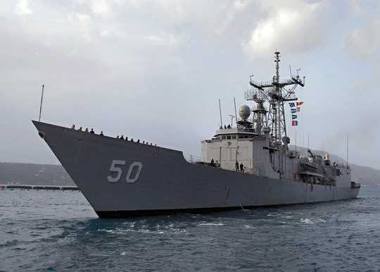 Tàu khu trục tên lửa U.S.S. Taylor của Hải quân Mỹ đang mắc cạn trên Biển Đen.