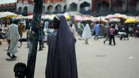 | Một phụ nữ Nigeria đứng bên khu chợ ở Maiduguri, nơi xảy ra vụ thảm sát hôm 2/11. Ảnh: AFP |