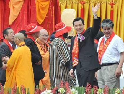 | Ông Mã Anh Cửu (thứ hai từ phải sang) trong một sự kiện của đạo Phật ở Đài Bắc ngày 13/5 vừa qua |
