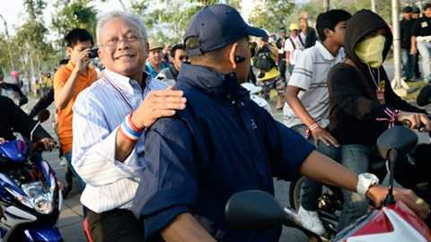 | Cựu Phó Thủ tướng Thái Lan Suthep (áo trắng ngồi sau xe máy) |
