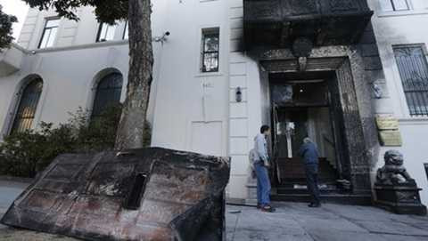 | Cửa trước lãnh sự quán Trung Quốc tại San Francisco cháy đen sau vụ phóng hỏa tối 1/1 |