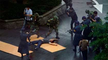 | Người đàn ông trong vai phần tử khủng bố bị tóm gọn trong cuộc tập trận Người bảo vệ Tự do Ulchi (UFG) hôm 20/8 |