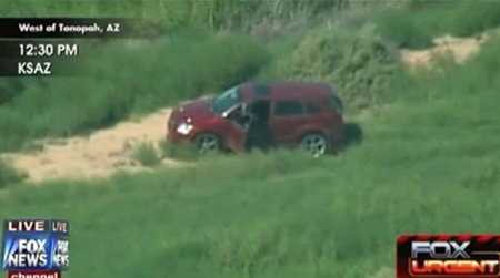 Từ đường cao tốc, nghi phạm lái chiếc Dodge Caliber màu đỏ đi vào khu vực rừng cây bụi rậm ở lân cận Salome, thị trấn phía tây Phoenix. Nghi phạm, mặc một chiếc áo thể thao, rời khỏi xe, chạy trốn. Rồi người này bất ngờ rẽ vào một bụi rậm, rút ra một khẩu súng lục, chĩa súng vào thái dương phải, bóp cò và ngã gục xuống.