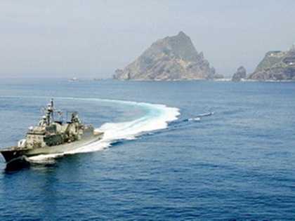 | Một tàu chiến Hàn Quốc gần đảo Dokdo/Takeshima |