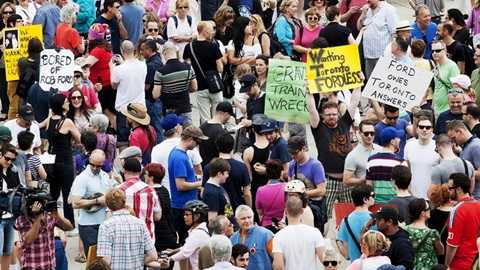 Báo Toronto Star đưa tin người biểu tình tuần hành qua nhiều đường phố và tập trung trước cửa tòa thị chính để đòi ông Ford phải từ chức. Họ giương cao những biểu ngữ như “Thành phố của chúng ta quan trọng hơn thị trưởng” hay “Thị trưởng Ford: Nếu ông yêu Toronto thì hãy trả lại sự tự do cho thành phố”.
