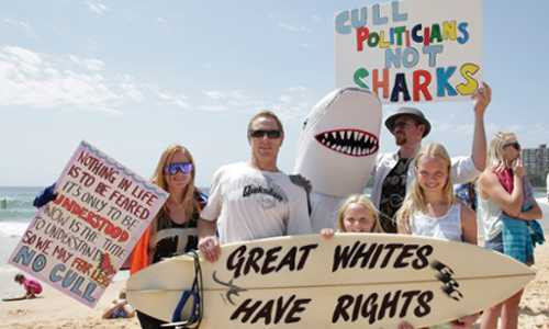 Người biểu tình chống sát hại cá mập trên bãi biển Sydney, Australia.