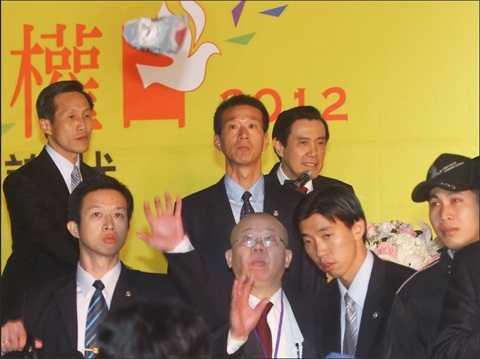 Ông Mã Anh Cửu hôm qua trở thành nạn nhân của màn ném giày, túi xách khi ông đang phát biểu mừng ngày Nhân quyền Quốc tế tại Đài Bắc.