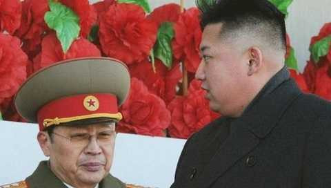 | Nhà lãnh đạo Triều Tiên Kim Jong-un và người chú Jang Song Thaek trong một sự kiện vào tháng 2/2012 |