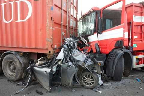 | Một chiếc xe ô tô bẹp dúm trong tai nạn liên hoàn |