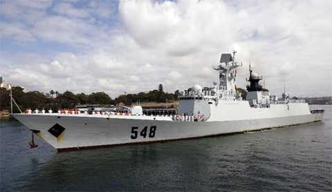 Tàu Yi Yang, một trong ba tàu hải quân Trung Quốc hôm qua cập cảng Sydney trong chuyến thăm 4 ngày ở Australia.