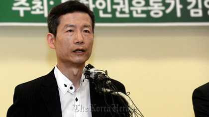 | Nhà hoạt động Kim Young Hwan tại cuộc họp báo ngày 26/7 |