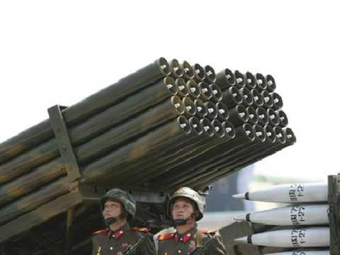 | Quân đội Triều Tiên bên cạnh một dàn tên lửa. Ảnh: AP |