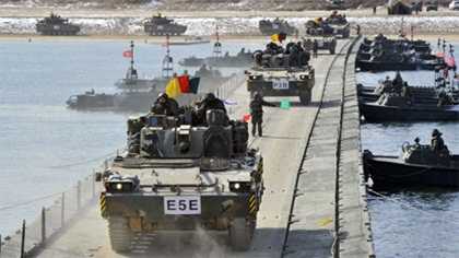 | Một cuộc tập trận mùa đông của quân đội Hàn Quốc được tiến hành đầu năm nay |