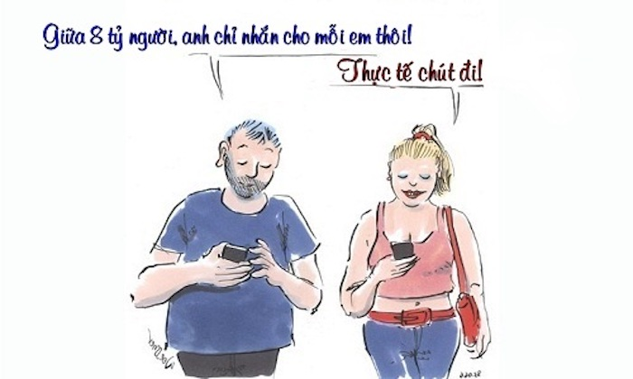- Thực ra thì do anh không đủ tiền nhắn tin cho 7,999,999,999 người còn lại trên thế giới.