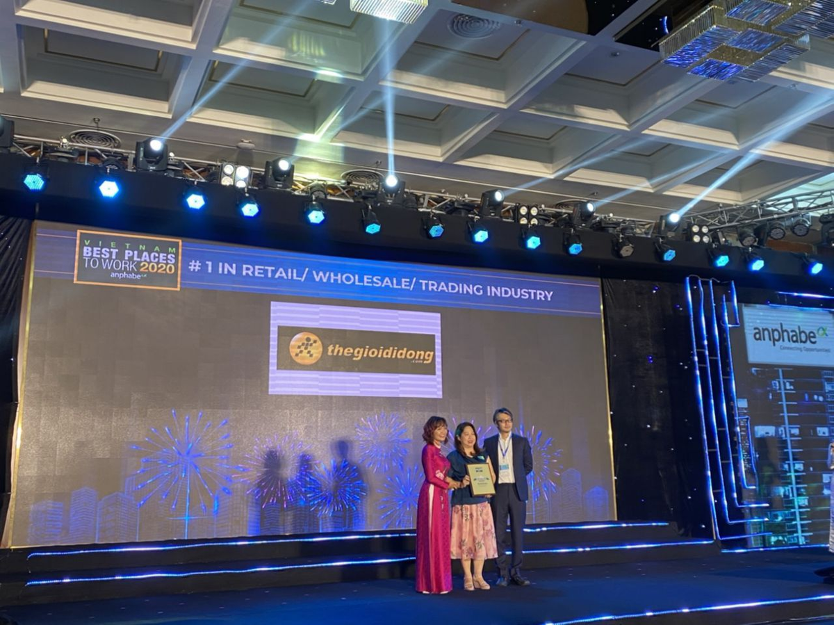 Vừa được Forbes vinh danh Top 1 bán lẻ vào cuối tháng 10, chỉ 1 tuần sau, Công ty Cổ phần Đầu tư Thế Giới Di Động (MWG) tiếp tục có thêm 3 danh hiệu từ Anphabe: dẫn đầu trong ngành Bán lẻ/Bán sỉ/Thương mại, đứng thứ 12 trong “Top 100 nơi làm việc tốt nhất Việt Nam 2020”, đồng thời nằm trong danh sách Top 50 doanh nghiệp Việt có Thương hiệu nhà tuyển dụng hấp dẫn.