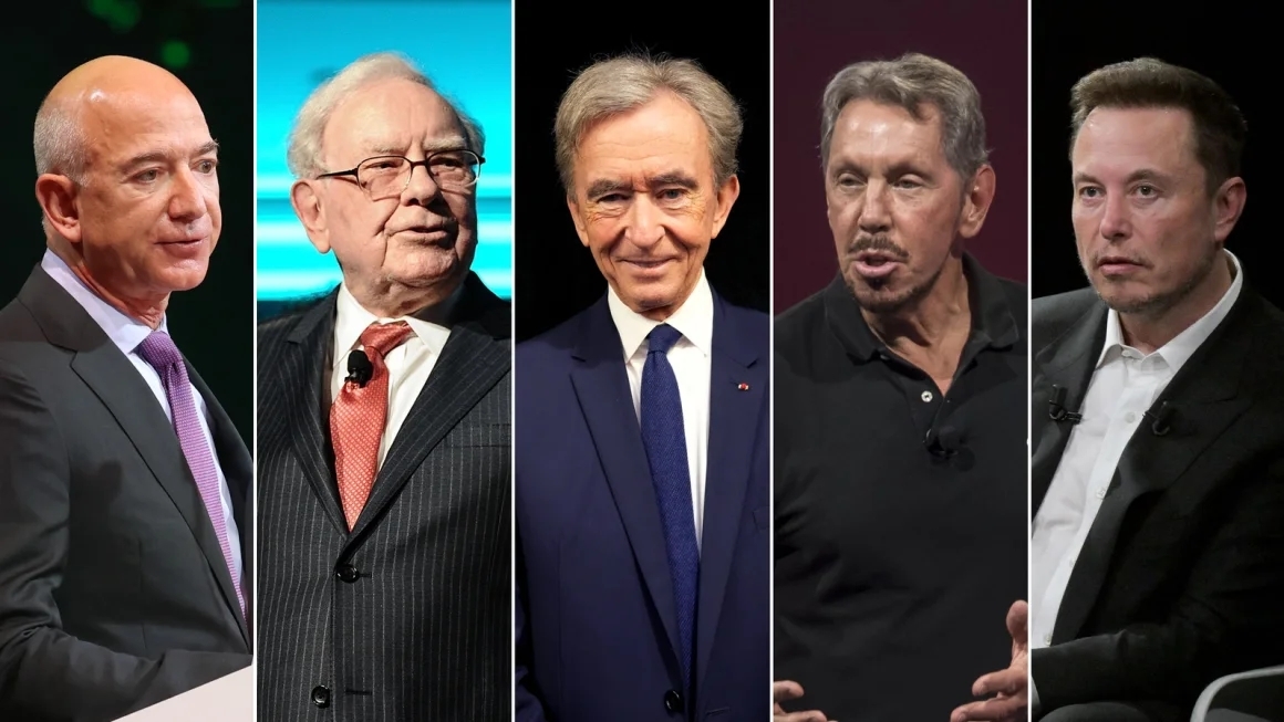 Jeff Bezos, Warren Buffett, Bernard Arnault, Larry Ellison và Elon Musk trở nên giàu có hơn rất nhiều trong những năm gần đây. (Ảnh: CNN)
