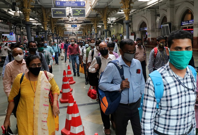 Người dân Ấn Độ đeo khẩu trang ngừa COVID-19 tại ga tàu. (Ảnh: Reuters)