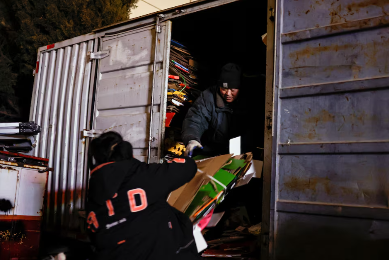 Vợ chồng bà Yang Chengrong thu nhặt phế liệu ở Bắc Kinh. (Ảnh: Reuters)