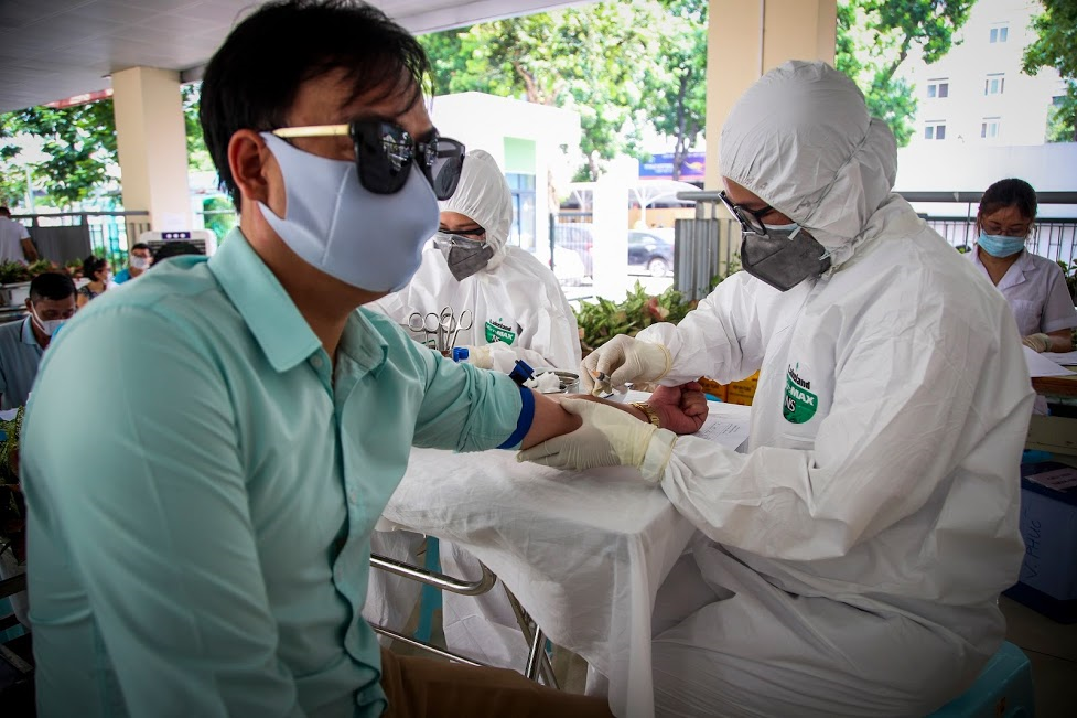 Người dân Hà Nội được lấy mẫu test nhanh COVID-19.