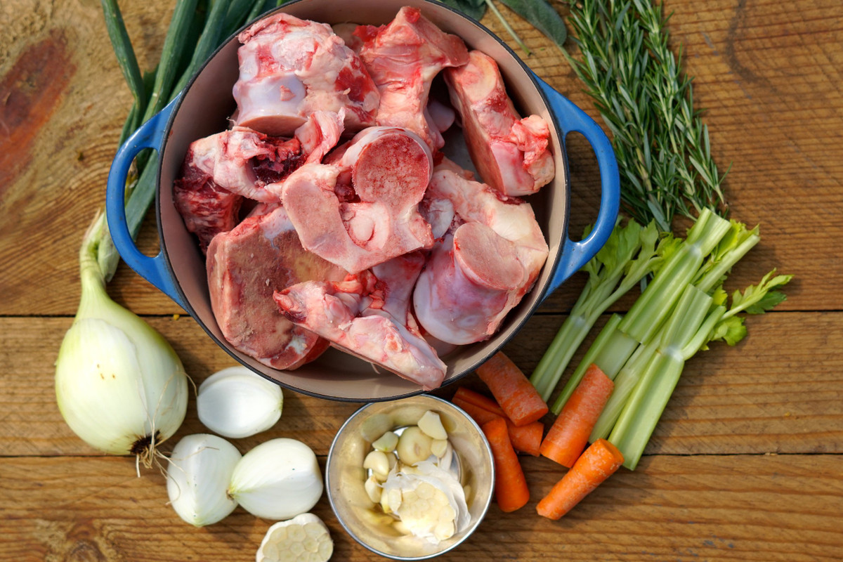 Ngoài việc chọn được xương tươi, sạch, hãy thêm 3 loại gia vị này để nồi xương hầm thơm ngon chuẩn vị: Hành, gừng, muối. (Ảnh: J&L Green Farm)
