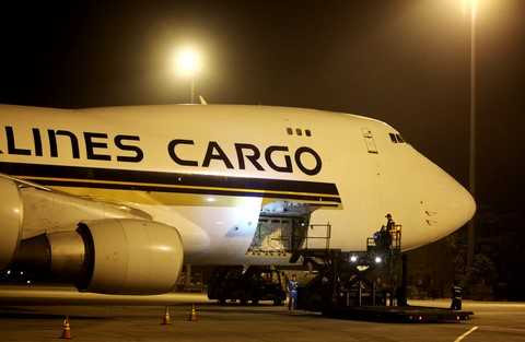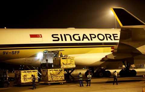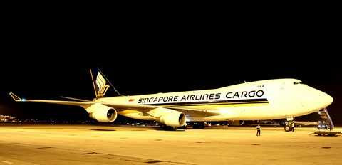 | Chiếc chuyên cơ của Hãng hàng không Singapores Airlines chở những “cô bò” cao sản mang thai được Vinamilk nhập về đêm ngày 20/4 |