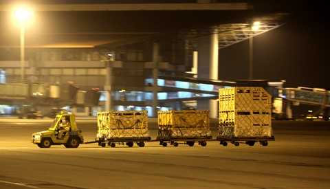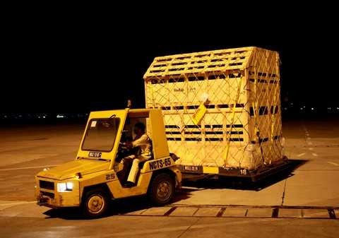 | Quy trình vận chuyển bốc dỡ 400 con bò sữa tại sân bay Nội Bài diễn ra chỉ trong hơn một giờ đồng hồ. Bò được chuyên chở trong các cũi gỗ theo tiêu chuẩn và quy định quốc tế, chuyên gia Australia đi áp tải và theo dõi sức khỏe đàn bò. |