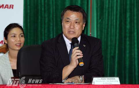 | Ông Kozo Tashima - Phó chủ tịch Liên đoàn bóng đá Nhật Bản phát biểu (Ảnh: Quang Minh) |