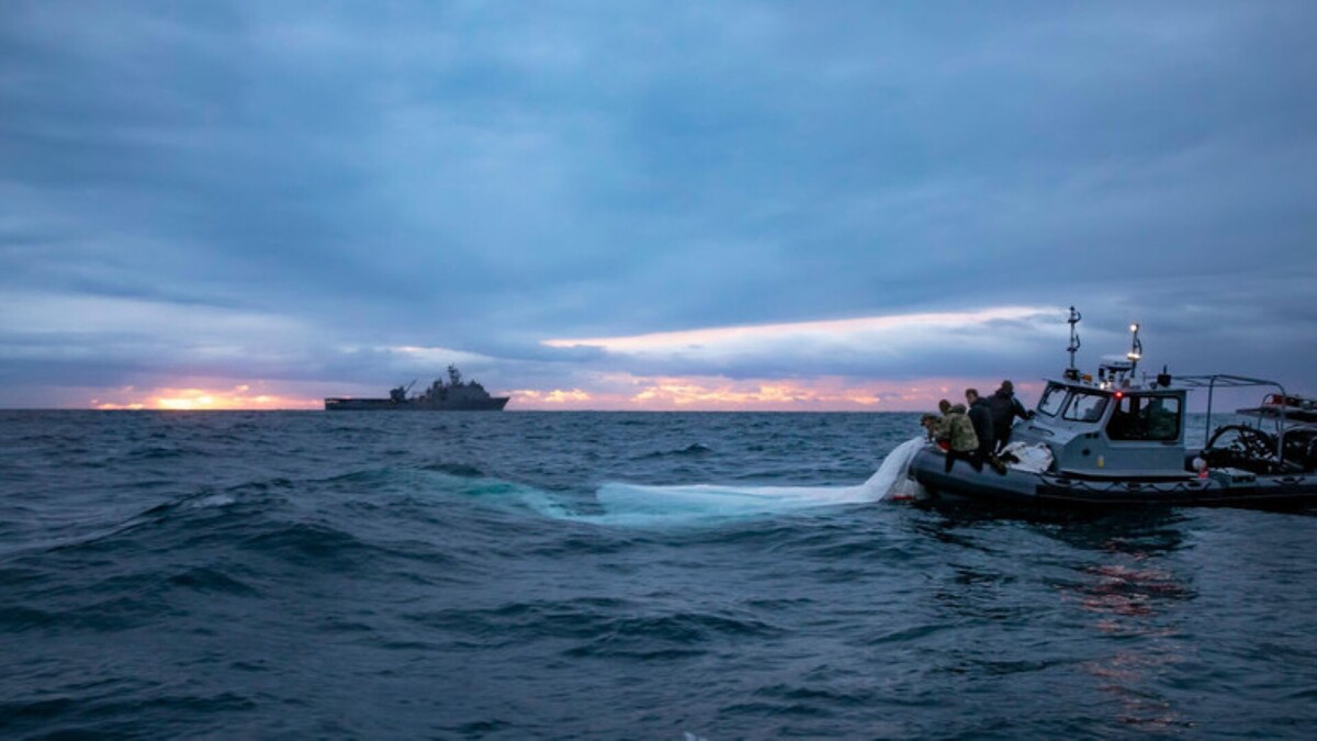 Hải quân Mỹ thu hồi "khí cầu do thám Trung Quốc" ngoài khơi bờ biển Nam Carolina, ngày 5/2/2023. (Ảnh: Getty)