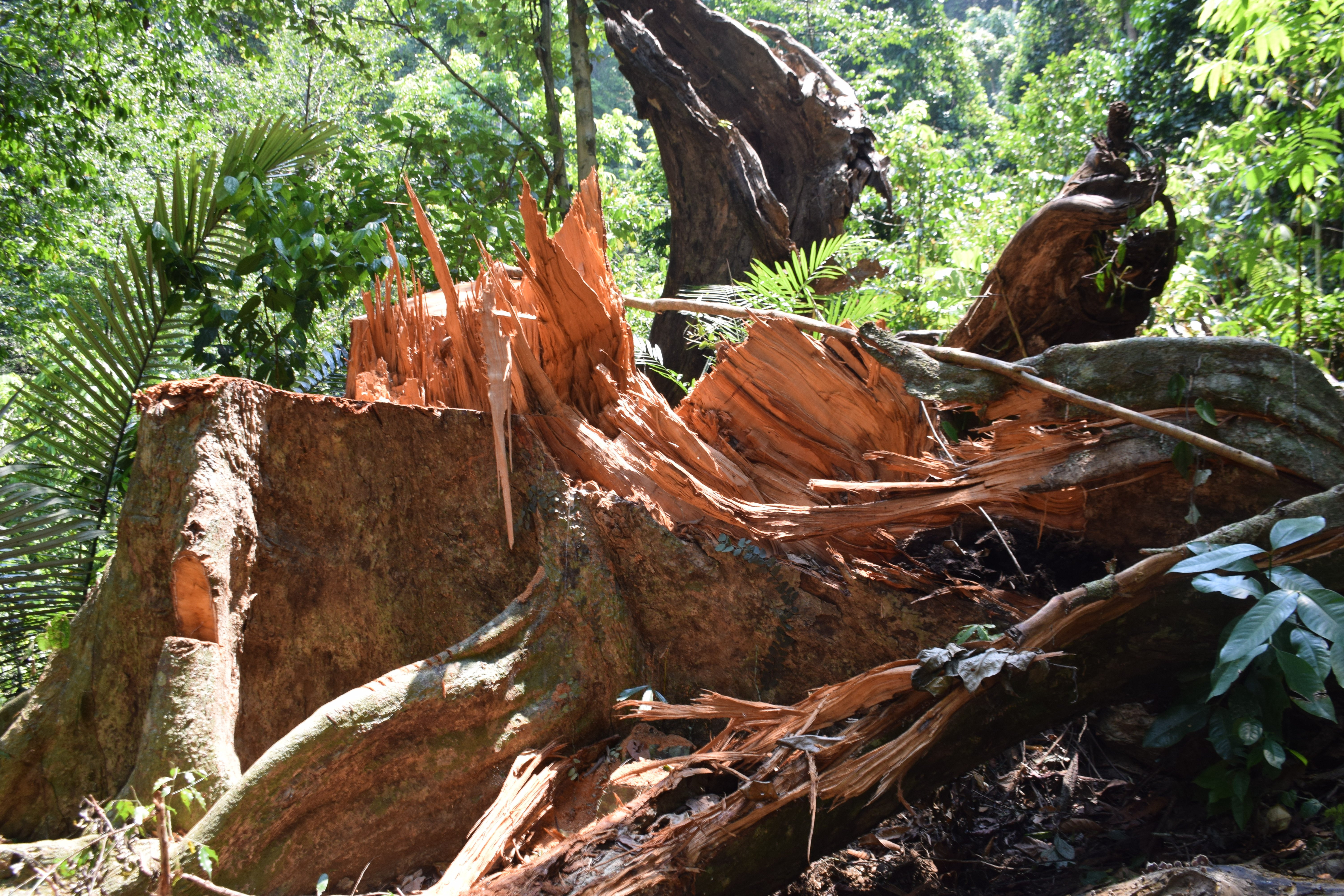 Một số cây gỗ với dấu vết mới bị triệt hạ.