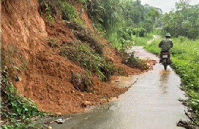 Cụ thể, phía trên mái taluy dương có nhà ở của 4 hộ dân nằm trong cung trượt; đường giao thông lên Đài truyền thanh huyện bị sạt lở taluy âm dài khoảng 35m.