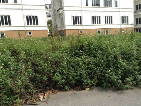 Cỏ dại che kín lối đi, cả khu đô thị như thành phố ma ám