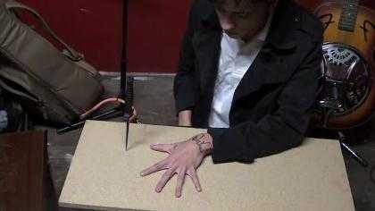 (VTC News) - Chàng trai vừa hát vừa đâm dao vào giữa các ngón tay ngày càng nhanh.