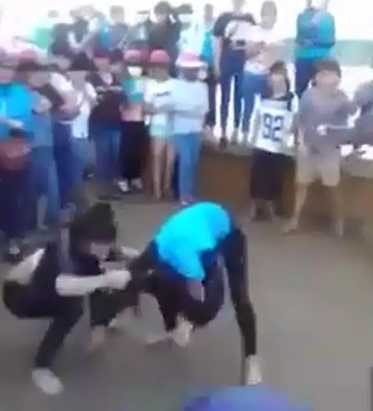 Theo hình ảnh trong video ghi lại, rất đông thanh thiếu niên nam nữ tụ tập tại địa điểm nói trên, sau đó hai cô gái đứng đối diện nhau, cô gái áo xanh vòng tay chào như động tác trước khi ra sàn đấu của võ sỹ.