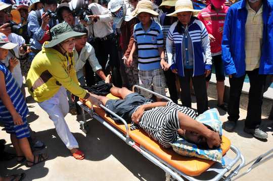 | Ngư dân Việt Nam bị thương sau khi va chạm trên biển với tàu nước ngoài - Ảnh: Người Lao Động |