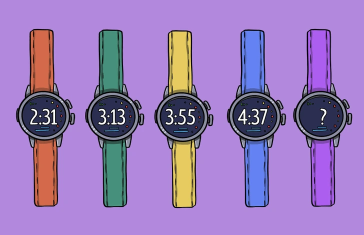 Đồng hồ màu tím sẽ chỉ 5h19 phút vì 42 phút được cộng thêm giữa mỗi đồng hồ.