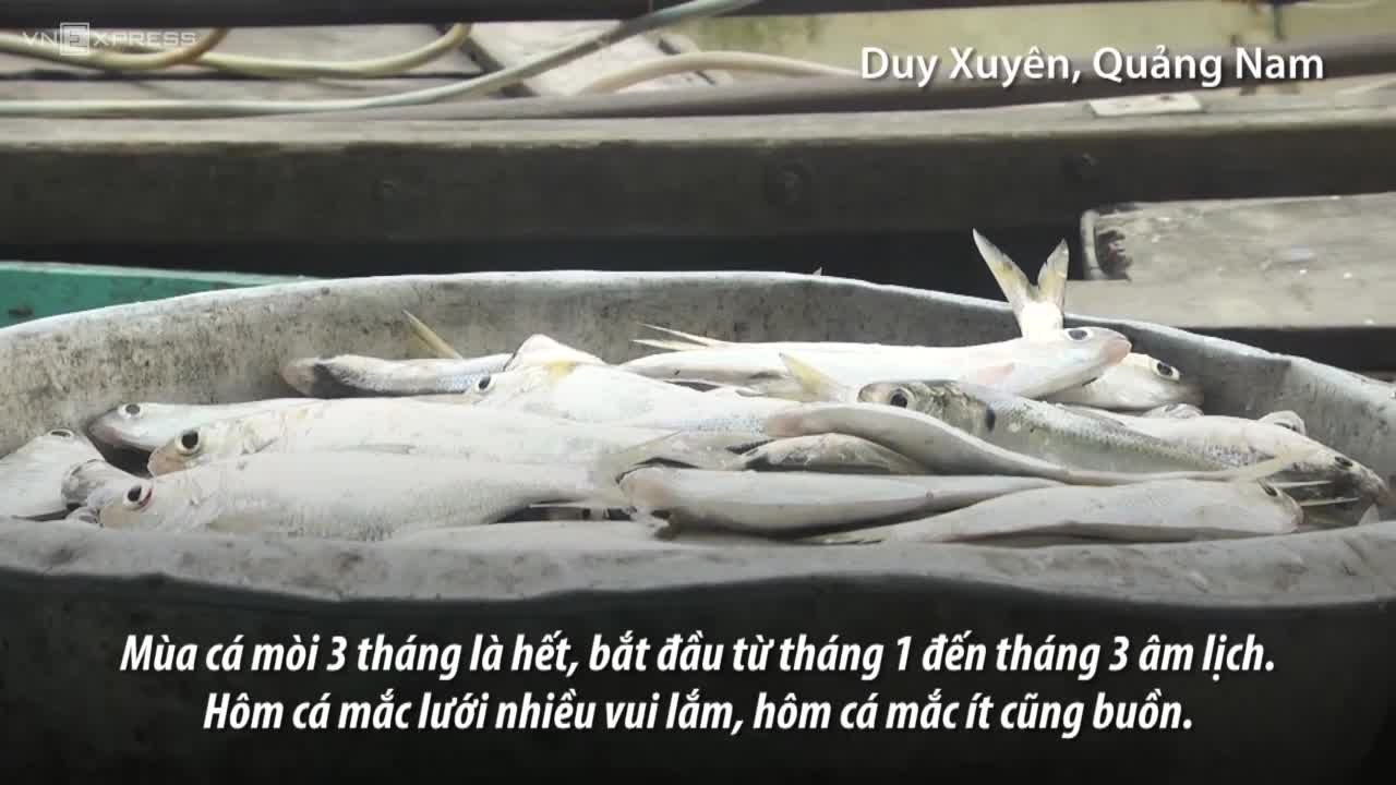 Tháng 1 - 3 âm lịch, cá mòi ngược lên sông Thu Bồn để sinh sản, người dân thả lưới đánh bắt, mỗi ngày thu được vài chục kg.