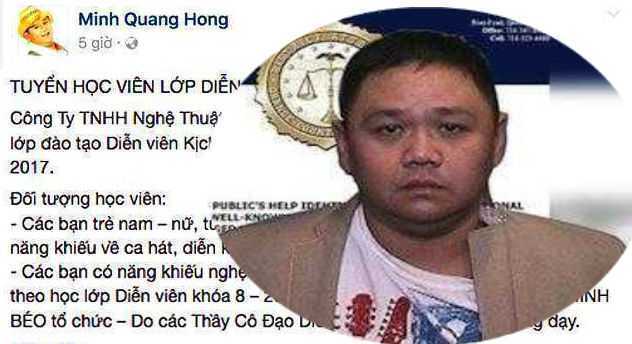 Vừa mới đây, thông qua trang facebook cá nhân, Minh Béo đăng tuyển học viên cho lớp đào tạo diễn viên khóa 8. Trong đó, người vừa mới ngồi tù ở Mỹ về tội "quan hệ tình dục bằng miệng với thiếu niên dưới 18 tuổi" và "toan có hành động dâm ô với trẻ dưới 14 tuổi" vẫn tự tin vỗ ngực tự nhận là "danh hài" và "đạo diễn". Anh ta còn là một trong 3 người trực tiếp đứng lớp giảng dạy các học viên.