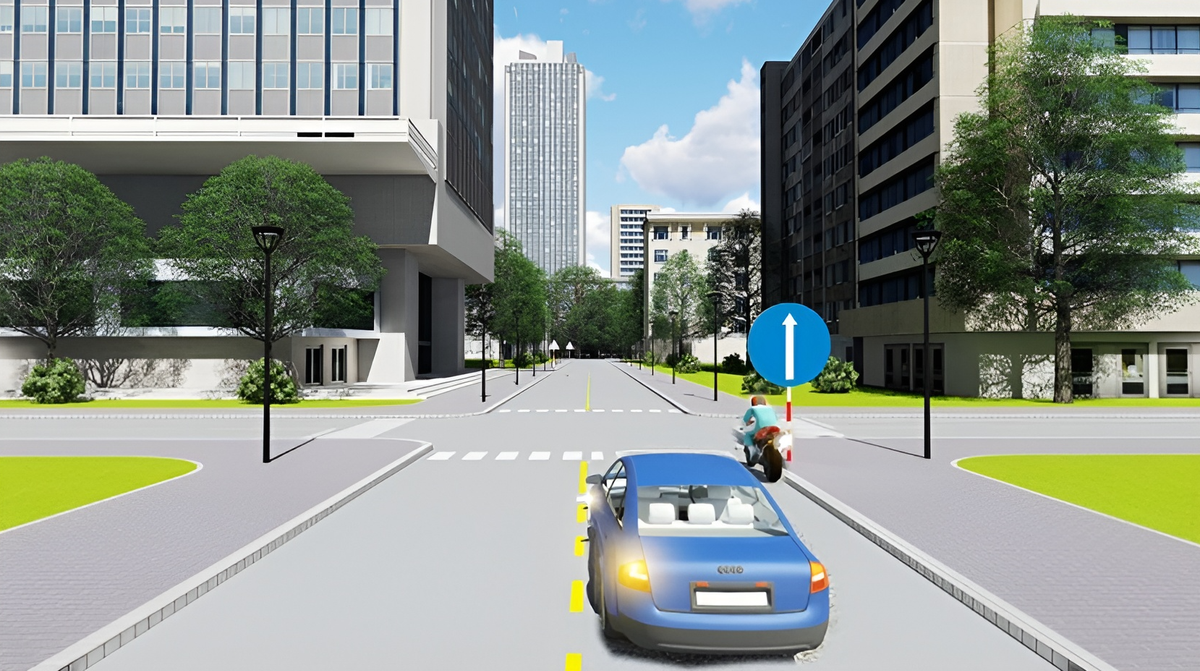 Theo Quy chuẩn kỹ thuật quốc gia về báo hiệu đường bộ QCVN 41:2019, biển báo "hướng đi phải theo" được ký hiệu là R.301a, các xe chỉ được đi thẳng (trừ xe được quyền ưu tiên theo quy định). Trong hình cả hai xe đều có tín hiệu xin nhan rẽ sang hướng khác nên cả hai xe vi phạm quy tắc giao thông.