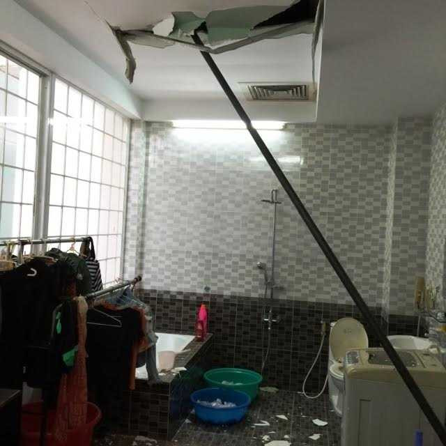 Mới đây, một thanh sắt dài gần 3m từ công trình đâm xuyên qua mái nhà lao thẳng vào trong nhà. Cũng như lần trước, lần này nhà tôi không có ai ở nhà. Quá kinh hãi! Gia đình tôi vô cùng lo lắng và bất an khi sống cạnh dự án này!".