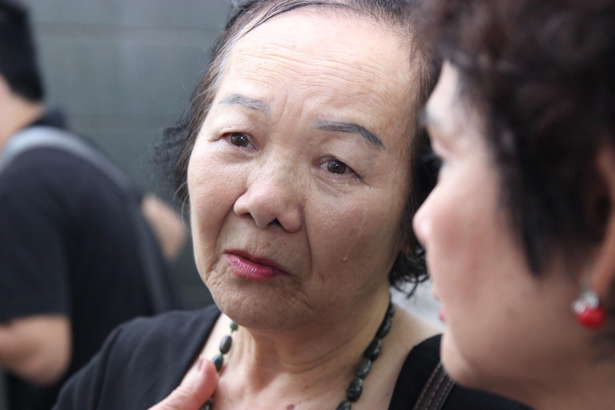 Sáng 7/8, NSƯT Đức Lưu - người vào vai Thị Nở trong phim "Làng Vũ Đại ngày ấy" nghẹn ngào tới tiễn đưa NSƯT Bùi Cường về nơi an nghỉ cuối cùng. Trước đó, khi nghe tin "Chí Phèo" ra đi, bà sững sờ như "sét đánh ngang tai". (Ảnh: Phạm Chiểu)