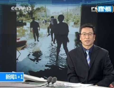 | Bức ảnh ghi lại cảnh quan chức họ Vương bắt Bí thư thôn cõng đi thị sát vùng lũ lụt trên mạng weibo |