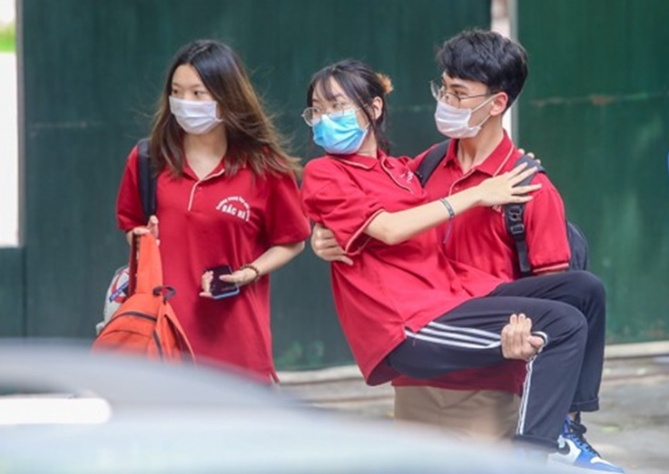 Phó hiệu trưởng trường THPT Bắc Hà, quận Đống Đa (Hà Nội) cũng cho biết, thí sinh được bạn bế rời điểm thi THPT Phan Huy Chú ở trên là học sinh của trường. Nữ học sinh này bị gãy chân trước kỳ thi 1 tháng. Hiện tại, thí sinh tập chủ động việc đi lại nhưng có thể thi xong bài thi môn Ngữ văn, thí sinh bị mệt nên bạn bè hỗ trợ bế em rời điểm thi sáng nay.