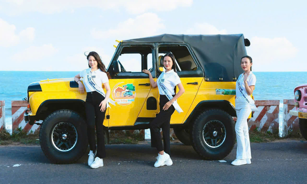 Dàn thí sinh Hoa hậu Biển Việt Nam 2024 vừa tham gia buổi diễu hành ấn tượng bằng xe jeep, nhằm quảng bá du lịch tỉnh Bình Thuận.