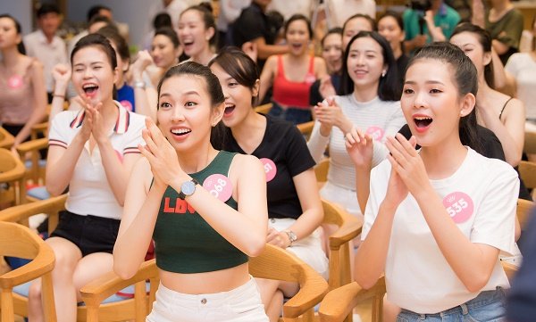 Các thí sinh reo hò phấn khích với không khí cuồng nhiệt của World Cup 2018 dù đang bận rộn với các phần thi tại "Hoa hậu Việt Nam 2018".