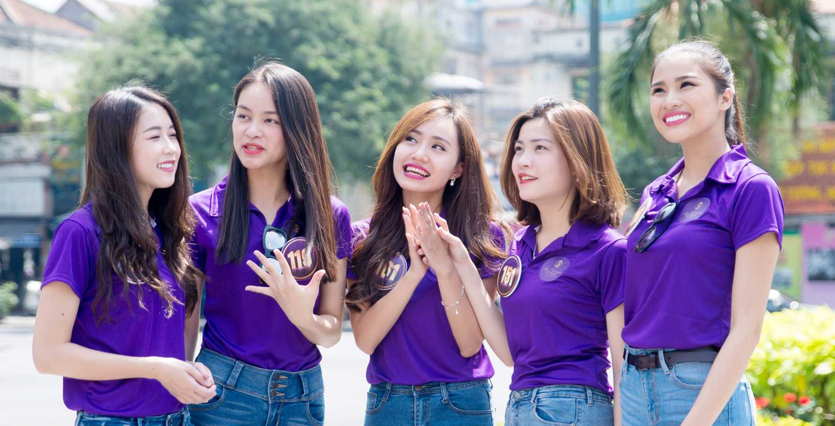 Trong trang phục quần jean và áo thun tím nổi bật của chương trình, 19 thí sinh vào chung kết Hoa khôi Du lịch Việt Nam đã thu hút sự chú ý của đông đảo người dân và khách du lịch trên tất cả tuyến phố mà các cô gái đi qua.