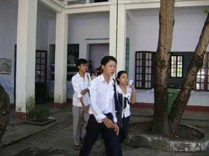 | Kết thúc môn Lý, tâm lý phấn chấn đã trở lại trên khuôn mặt các thí sinh sau tiếng trống kết thúc thời gian làm bài |