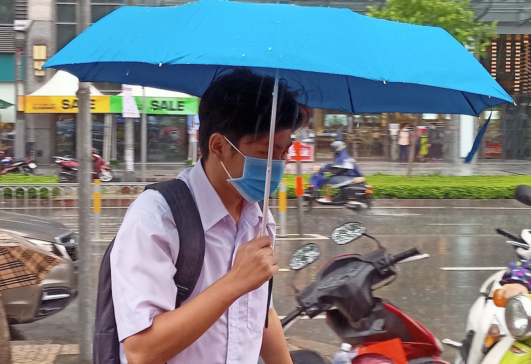 Khoảng 14h05, một cơn mưa rào bất chợt đổ xuống TP.HCM. Cơn mưa xuất hiện đúng thời điểm các thí sinh chuẩn bị tới trường thi môn Toán, kỳ thi tốt nghiệp THPT 2020.